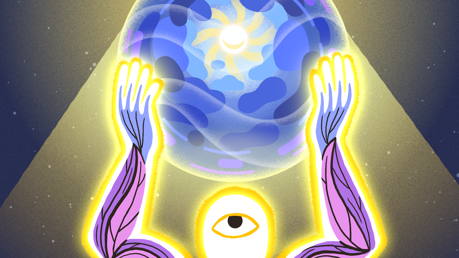 To make the designs and animation work, I created three style frames in After Effects for the transformation at the story’s climax. The approach for the statue with the sphere representing the person’s collective mind of memories, was to do a realistic stylize 2D and 3D collage.