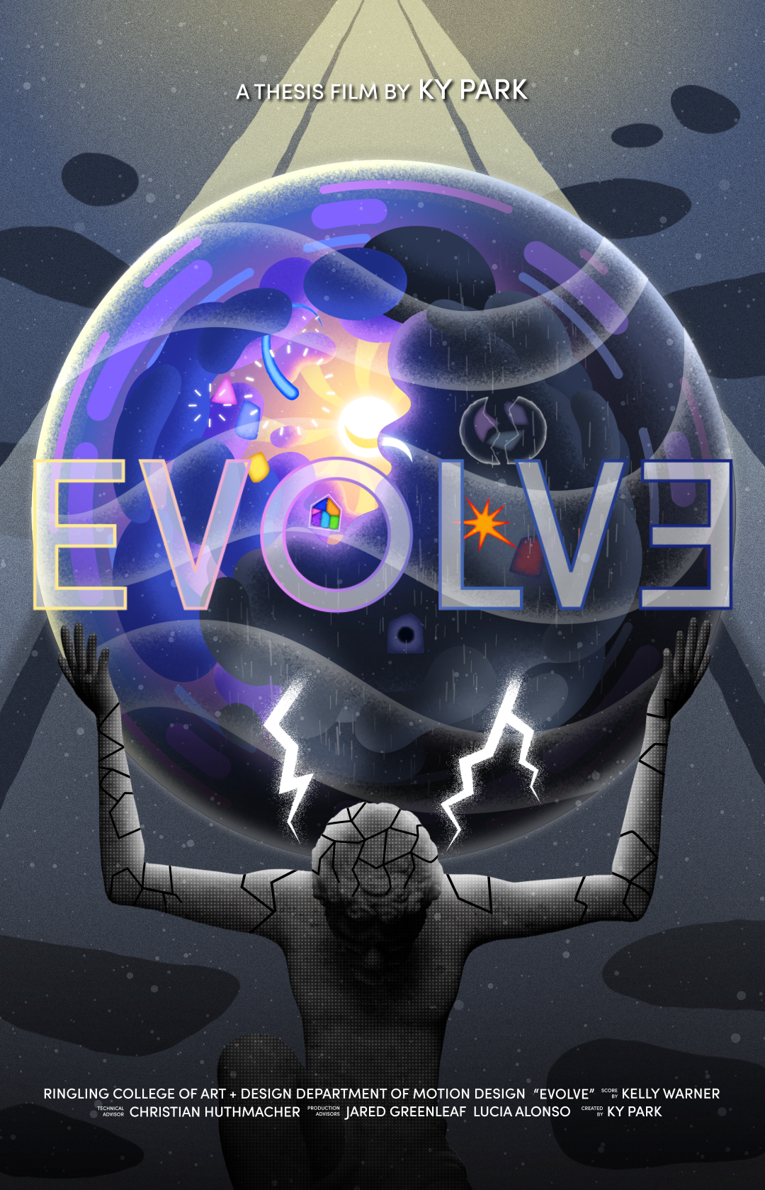 For my Senior thesis, Evolve is an animated film about showcasing the highs and lows of one’s life in reflection, and trying to cope with it by staying strong and positive.